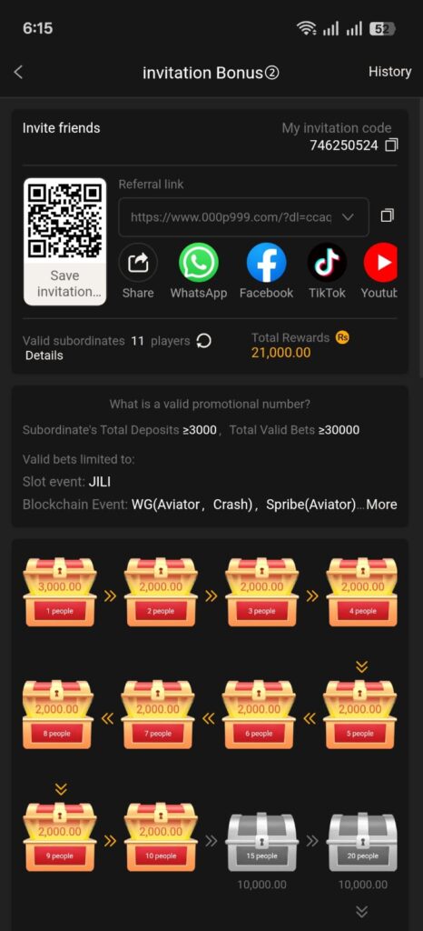 Another reason players prefer this app is the wide variety of games. From Dragon VS Tiger to Mines Game and Fortune Gems, users always have multiple choices. The app also provides a referral feature that allows players to earn extra rewards by inviting friends.